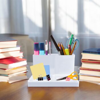 The Elite Desk Organiser is your all-in-one solution to a clutter-free workspace. With five smartly designed compartments, it helps you keep everything from pens and scissors to staplers and sticky notes neatly sorted and within reach. Whether it's your office desk or study table, this organiser brings structure to your